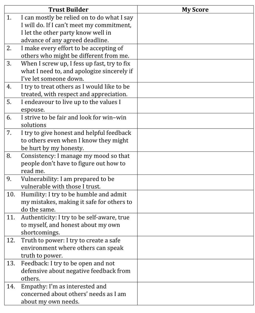 Score your trust factor on a scale of 1-10 (with 10 being the highest trust factor possible).